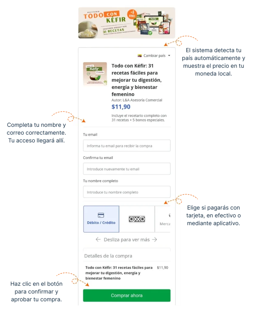 En cuanto confirmes tu pago recibirás un correo con el acceso inmediato al recetario y todos los bonos incluidos. Podrás descargarlos y guardarlos en tu celular, tablet o computadora.